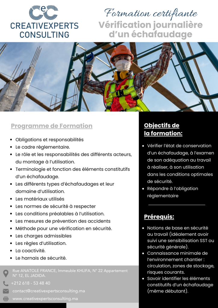 VÉRIFICATION JOURNALIÈRE D’UN ÉCHAFAUDAGE
